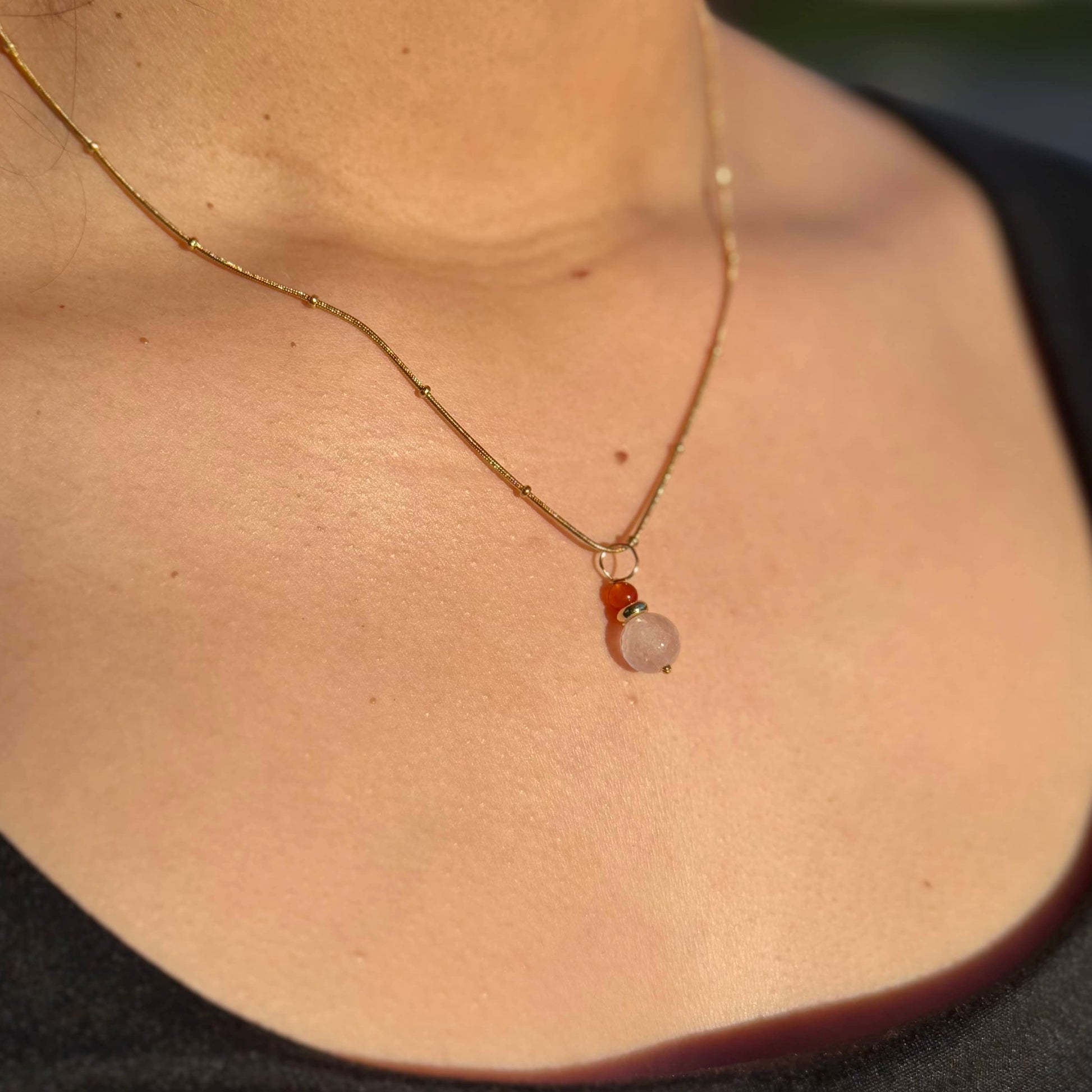I Call In Divine Love – Rose Quartz & Carnelian Necklace